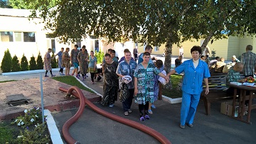 Сотрудники и проживающие учреждения приняли участие в учебной эвакуации. Были отработаны и закреплены правила поведения во время пожара проживающих и персонала, отработаны действия групп ГО.