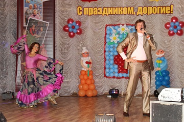 Актовый зал дома-интерната был украшен в тематике праздника. Фигуры двух задорных старичков, выполненные из воздушных шаров, вызывали улыбки проживающих, наполняющих зал. Но даже столь искушенные зрители, как подопечные дома-интерната, ранее присутствовавшие на множестве грандиозных мероприятий, не ожидали такого профессионализма и задушевности, какие ждали их впереди.