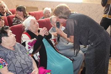 От лица министра социального развития Ларисы Викторовны Колязиной и от себя лично поздравил проживающих директор дома-интерната Сергей Владимирович Сафошкин. Обратившись к своим подопечным, он сказал: «Сегодня для меня и моих сотрудников день добра и уважения к вам, хотя мы вас всегда ценим и уважаем. А для вас – Праздник мудрости. Потому что в наших стенах никто не стареет, а лишь становится мудрее. Мы стараемся, чтобы вам всем здесь было комфортно и по-домашнему тепло. Не старейте, живите до ста лет, молодейте душой и телом! А мы сделаем для этого все, что в наших силах!»