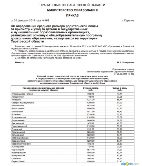 Здравствуйте,уважаемая Марина Анатольевна!У нас в городе Петровске странная ситуация с родительской оплатой за садик..с марта этого года мы платим по 1300 рублей в месяц.такой приказ издал глава нашего района Заигралов Ю.А.и это вопреки Вашему приказу о сумме оплаты за садик в г.Петровске на 2015 год в размере 900 рублей!!!а с 1 ноября размер оплаты за садик будет начисляться 63,16 рублей за 1 день.т.е. если ребёнок посещал садик 22 дня-оплата будет составлять 1389,52 рублей.а компенсацию оплаты за садик нам начисляют от суммы 900 рублей.законно ли повышение оплаты за садик нашей местной властью?!