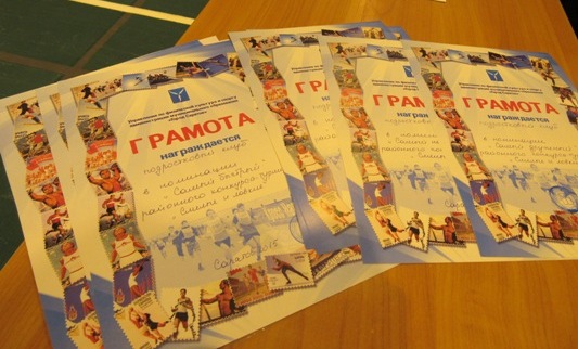 В торжественной обстановке прошло награждение победителей спортивных состязаний. Команда-победитель получила грамоту за первое место и переходящий кубок, остальные команды наградили грамотами по номинациям: «самый дружный», «самый находчивый», «самый ловкий», «самый быстрый».