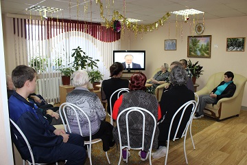3 декабря в 12.00 в Энгельсском доме-интернате проживающие и сотрудники собрались у экранов телевизоров для просмотра обращения В.В. Путина к Федеральному Собранию. Ситуацию в мире сегодня трудно назвать спокойной, поэтому нынешнее послание смотрели и слушали с особым вниманием.