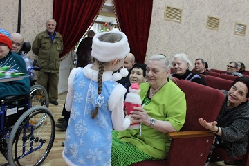 Кроме того, в этот святой праздник в Энгельсском доме-интернате прошли праздничные мероприятия. Выступали воспитанники МАДОУ «Детский сад №76» и ученики МОУ СОШ №12 – маленькие ангелы, растрогавшие зрителей своей искренностью, непосредственностью и артистизмом. Кроме чудесного тематического представления, дети подарили проживающим сладкие подарки и сувениры ручной работы. Бабушки и дедушки, желающие хоть как-то отблагодарить своих гостей, тут же возвращали сладости дарителям.