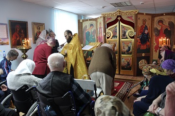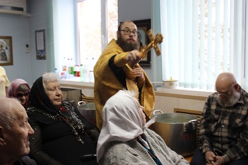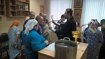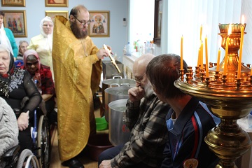 В Домовом Храме первого корпуса дома-интерната и в молельной комнате третьего корпуса прошли Водосвятные молебны.
