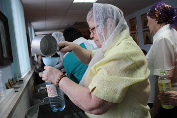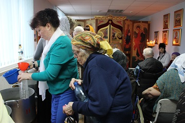 Верующие, которые в силу проблем со здоровьем не смогли самостоятельно прийти в Храм, святую воду все равно получили. Ее разнесли по комнатам внимательные сотрудники.