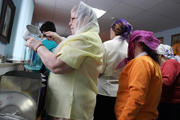 Говорят, сила крещенской воды так велика, что если добавить только одну ее капельку в сосуд с простой водой, то та мгновенно приобретет целебные свойства. В Энгельсском доме-интернате было освящено достаточное количество воды, чтобы все проживающие и сотрудники получили возможность набрать ее в Храме столько, сколько пожелают.