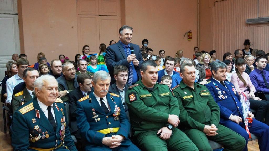 Праздничная концертная программа для мужчин, среди которых были представители военного комиссариата, ветераны ВОВ, ветераны боевых действий в Афганистане, воины-интернационалисты, была подготовлена педагогами и учащимися нашего Центра и общеобразовательных учреждений Октябрьского района. Также на празднике присутствовали педагоги и выпускники школ, уже отдавшие свой долг Родине, и учащиеся старших классов, которые только готовятся к службе в армии. С наступающим праздником всех собравшихся мужчин поздравила главный специалист отдела образования администрации Октябрьского района Галицкая Елена Николаевна, которая пожелала всем крепкого здоровья, сил и благополучия! А в завершении праздника почетным гостям вручили памятные сувениры – открытки, сделанные руками ребят.
