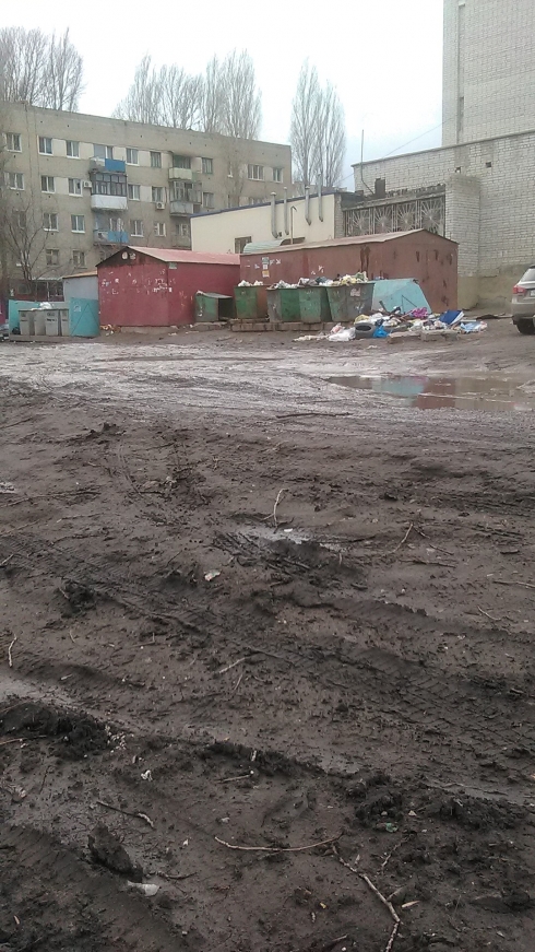 Двор не асфальтирован, после снега и дождя размывает землю, а машины усугубляют данное положение образуя лужи и выбоины. Просим Вас, в соответствии с п.п. 2.2.3. СанПиН 42-128-4690-88 «Санитарные правила содержания территорий населенных мест» перенести контейнерную площадку и установить мусорные баки на удалении от подъездов жилых домов, детских площадок и мест отдыха населения непосредственно на 4-ый Нагорный проезд, т.к. там проезжая часть и есть место для оборудования контейнеров. Выражаем надежду, что наше обращение к Вам как к Главе администрации Заводского района и уважаемому человеку, не останется без должного внимания.