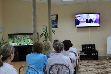 Выступления президента всегда вызывают огромный интерес у проживающих дома-интерната. И на этот раз ровно в 12:00 все собрались у телевизоров. «Прямую линию» с Путиным смотрели в нескольких зонах интерната. Маломобильные проживающие смогли посмотреть трансляцию в своих комнатах. Но гораздо интереснее было собравшимся в холлах жилых отделений, в читальном и актовых залах. Здесь можно было обсудить услышанное с друзьями и соседями. Кроме того, сотрудники тоже присоединились к просмотру.