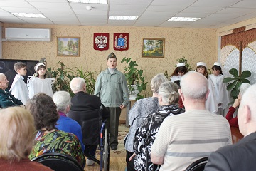А ближе к вечеру дом-интернат посетили ученики средней школы №9. Школьники подготовили для ветеранов праздничный концерт. Ребята настолько прониклись духом праздника и были растроганы присутствием настоящих участников войны, что во время выступления не смогли сдерживать слез. А ветераны отвечали на выступления бурными овациями. Юные таланты никого не оставили равнодушным. Глядя на молодое поколение, старики шептали: «Ведь и сейчас есть кому Родину защитить в случае чего! Настоящие патриоты!»