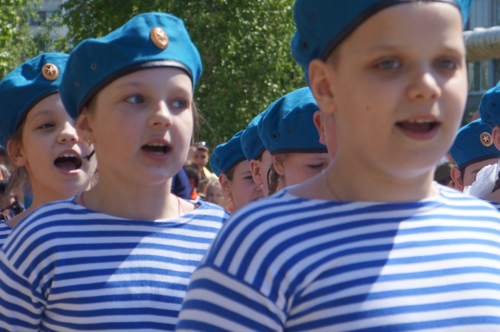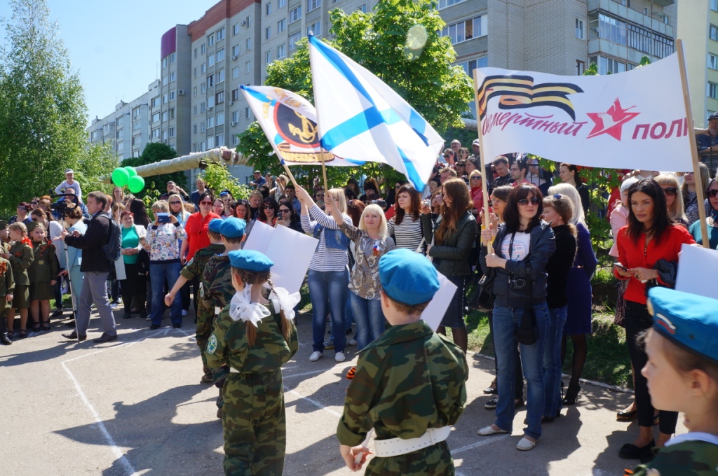 Четко чеканя шаг, ученики сменяли друг друга. Многие несли в руках плакаты с фотографиями своих прадедов. По словам учителей, дети провели большую поисковую работу, чтобы восстановить боевые истории своих близких. Самую большую поддержку зрителей получило выступление отрада «Юнги» 1 «Д» класса. Родители тоже пришли в тельняшках даже изготовили флаги. «Мы две недели каждый день маршировали. Если честно, то сначала получалась не очень слаженно, но ребята быстро освоили строевой шаг. Надеемся, что мы победим. Чтобы поддержать детей тоже пришли в морской тематике, вместе с флангами. Это даст нашим малышам дополнительную уверенность в себе», - рассказала Елена Климова.
