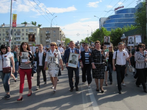 Участники шествия прошли маршем вдоль улиц города с фотографиями своих родственников - участников войны. Колонна Октябрьского района растянулась на десятки метров, в рядах которой насчитывалось порядка 1500 человек. Среди них были целые семьи, пришедшие на праздник вместе с детьми, бабушками и дедушками.
