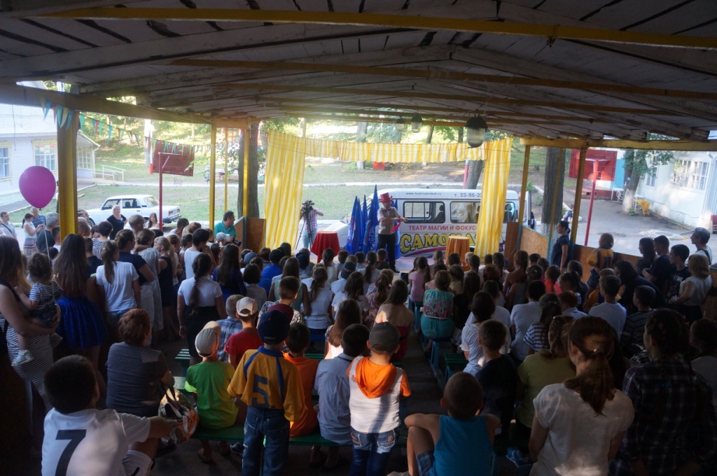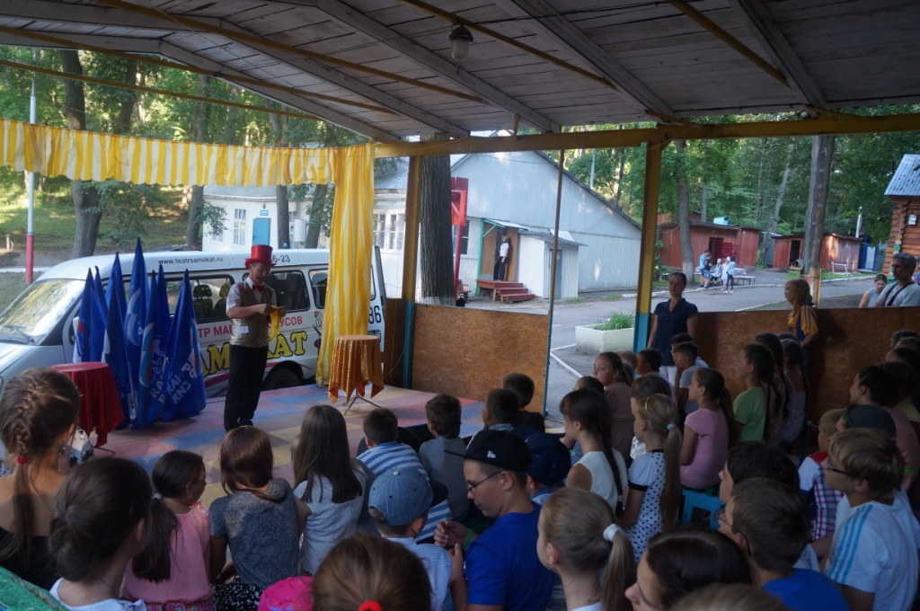 В рамках акции регионального отделения партии «Единая Россия» «Театры малых городов – детям» для отдыхающих в оздоровительном лагере «Маяк» было организовано представление Саратовского муниципального театра магии и фокусов «Самокат»