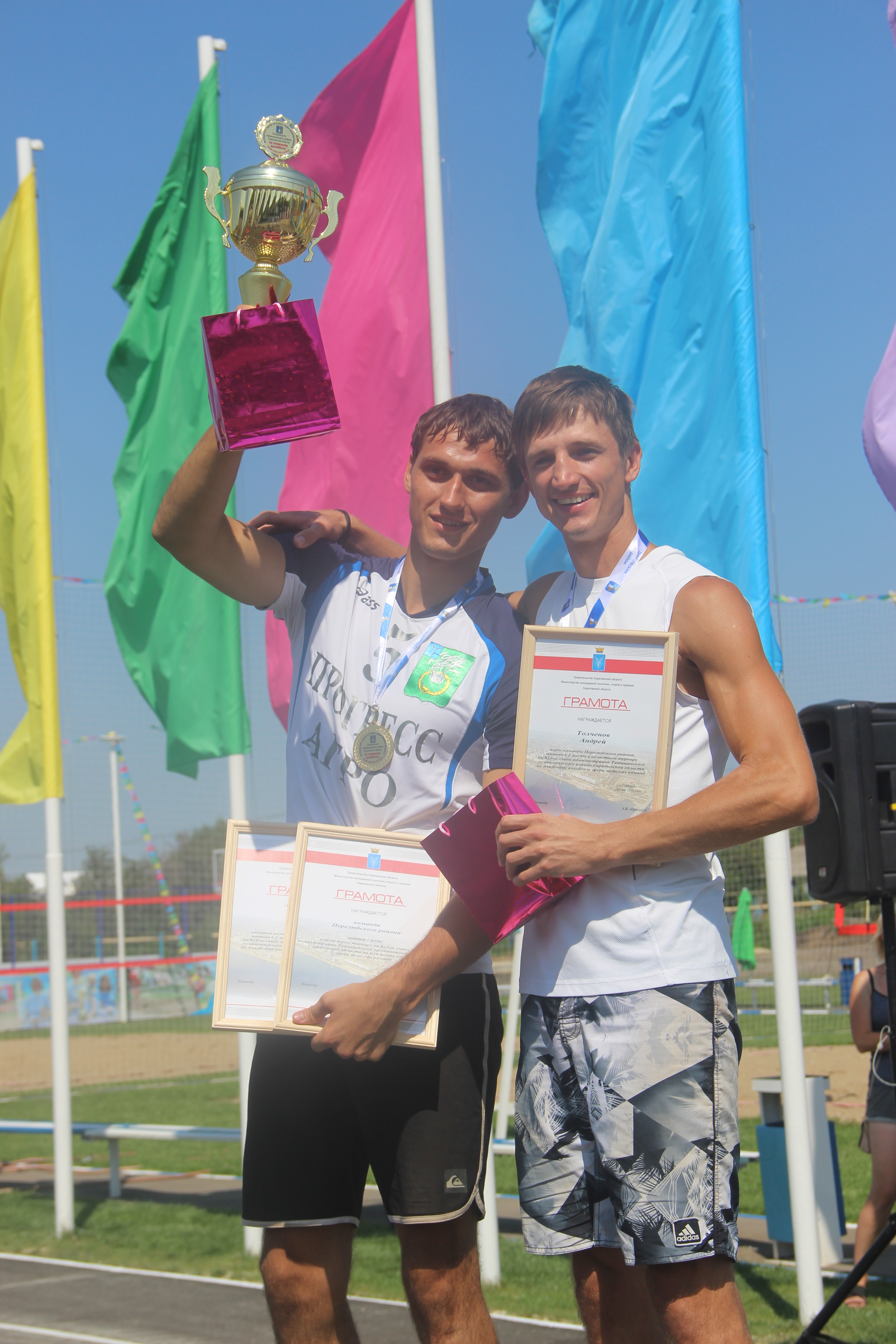 В очередной раз волейболисты из Перелюбского района показали профессиональную и красивую игру. Вадим Гнатюк и Андрей Толченов сталии бесспорными лидерами турнира, заняв первое место. Строчкой ниже оказалась команда Базарно-Карабулакского района: Дмитрий Шеломенцев и Рубен Магакян уверенно шли к победе, но уступили напору перелюбских спортсменов, заняв второе место. Роман Кабутов и Антон Лапшин – команда «АльТаиР» - стали третьими.