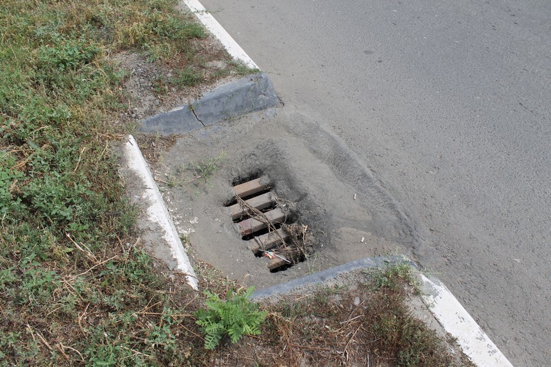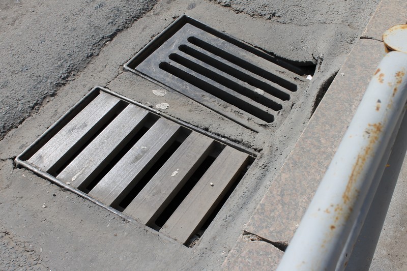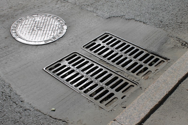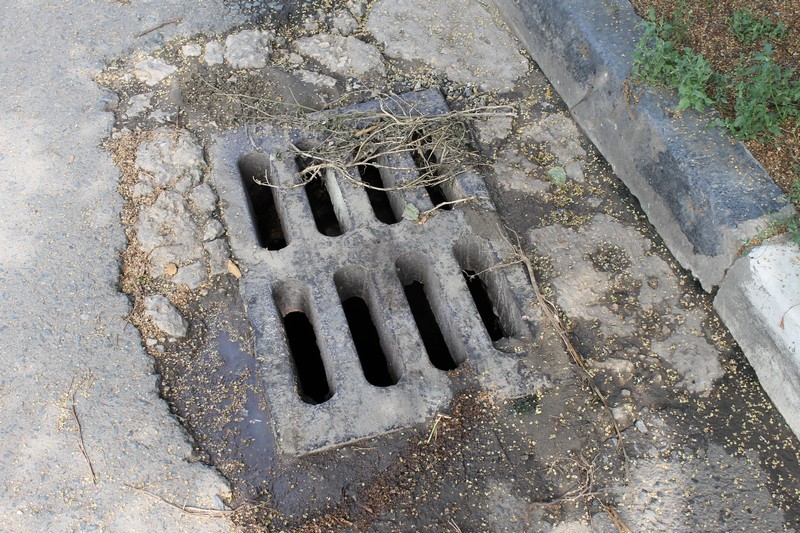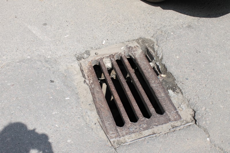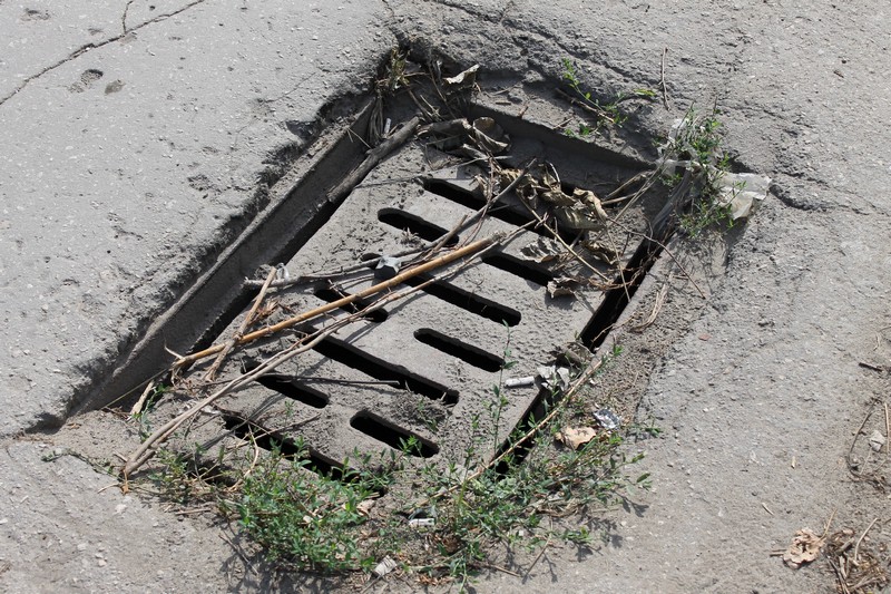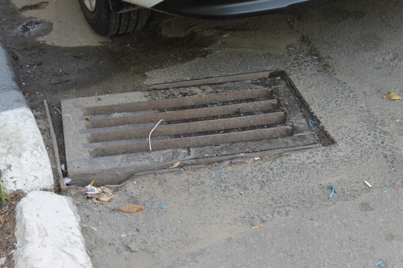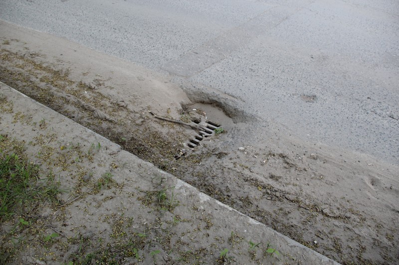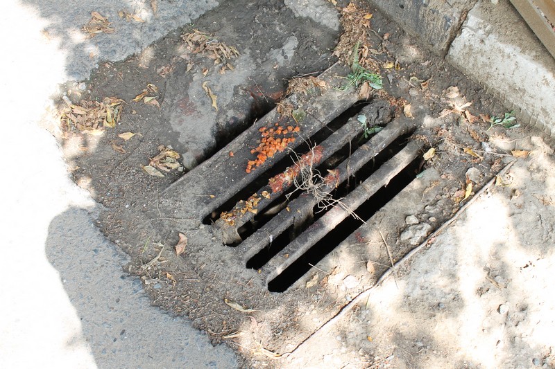 Инспектируя дождевую канализацию, к сожалению, должны отметить, что многие дождеприемники города покрыты слоем пыли и грязи, что ставит вопрос об их пропускной способности. Наиболее ярким примером служит единственная ливневка на улице Некрасова между между Соколовой и Большой Горной.