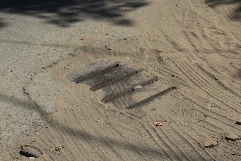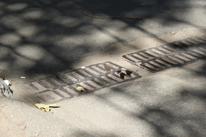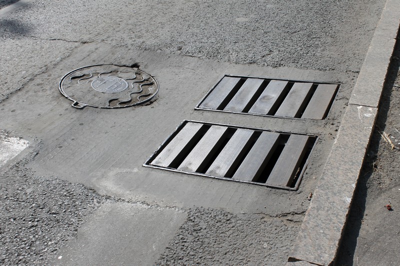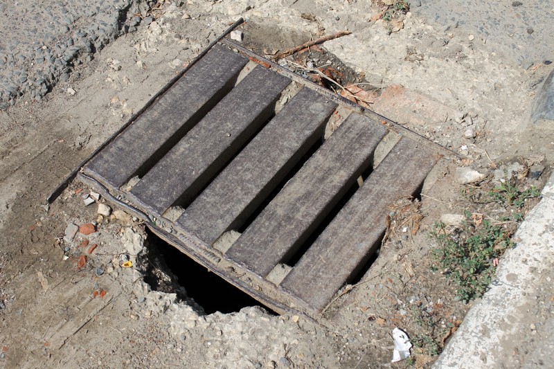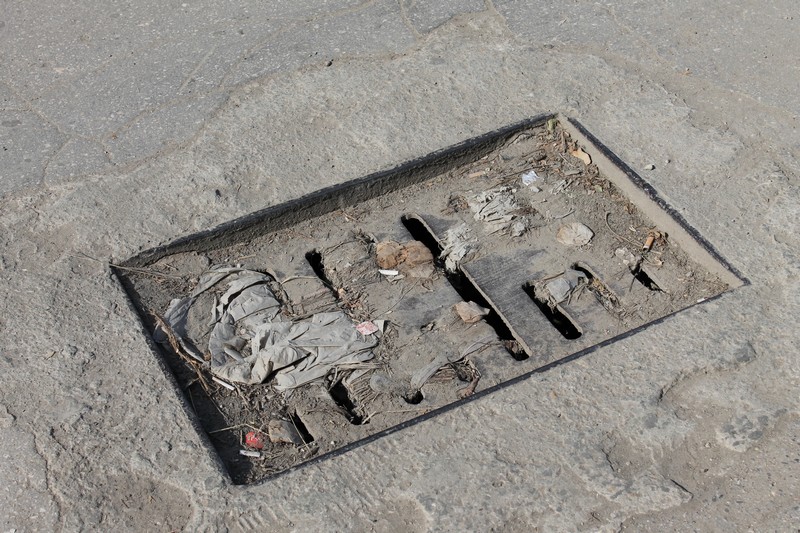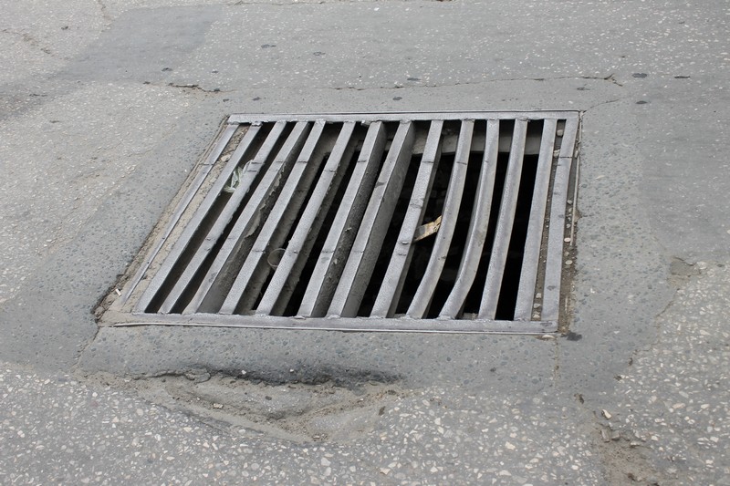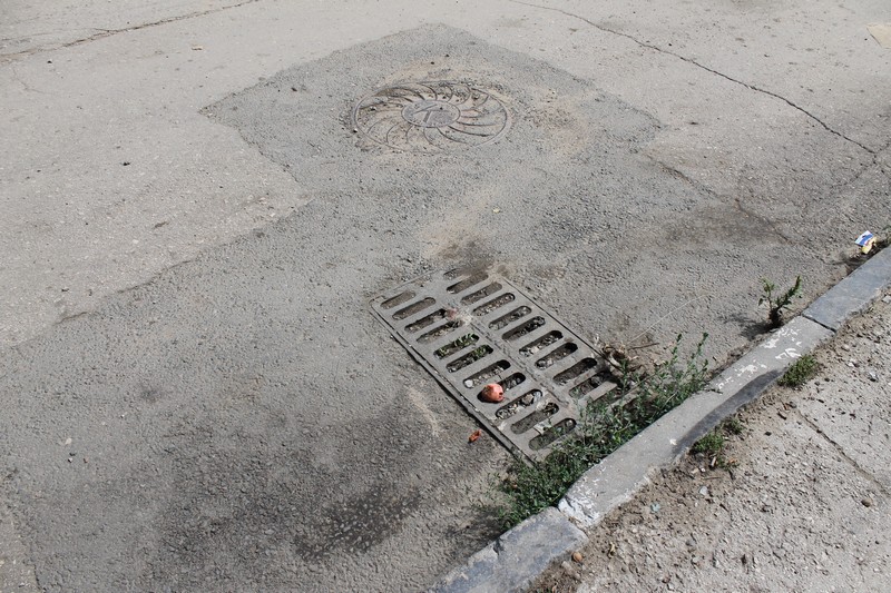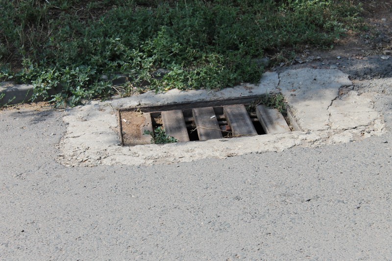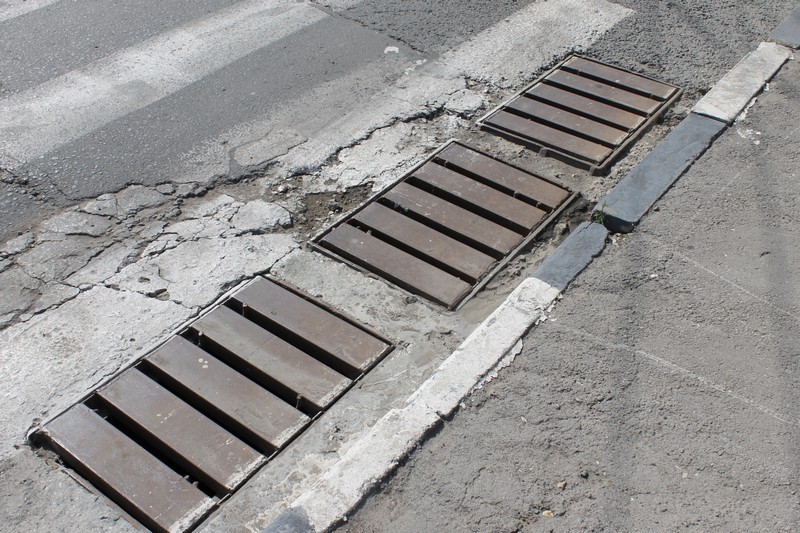 Инспектируя дождевую канализацию, к сожалению, должны отметить, что многие дождеприемники города покрыты слоем пыли и грязи, что ставит вопрос об их пропускной способности. Наиболее ярким примером служит единственная ливневка на улице Некрасова между между Соколовой и Большой Горной.