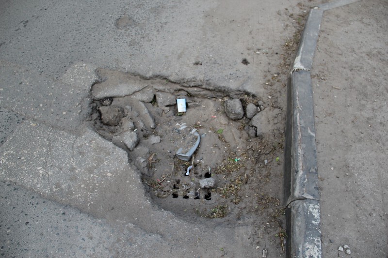 Нарушения «дорожного» ГОСТа выявлены на улице Октябрьской на участке от Посадского до Глебучева Оврага.