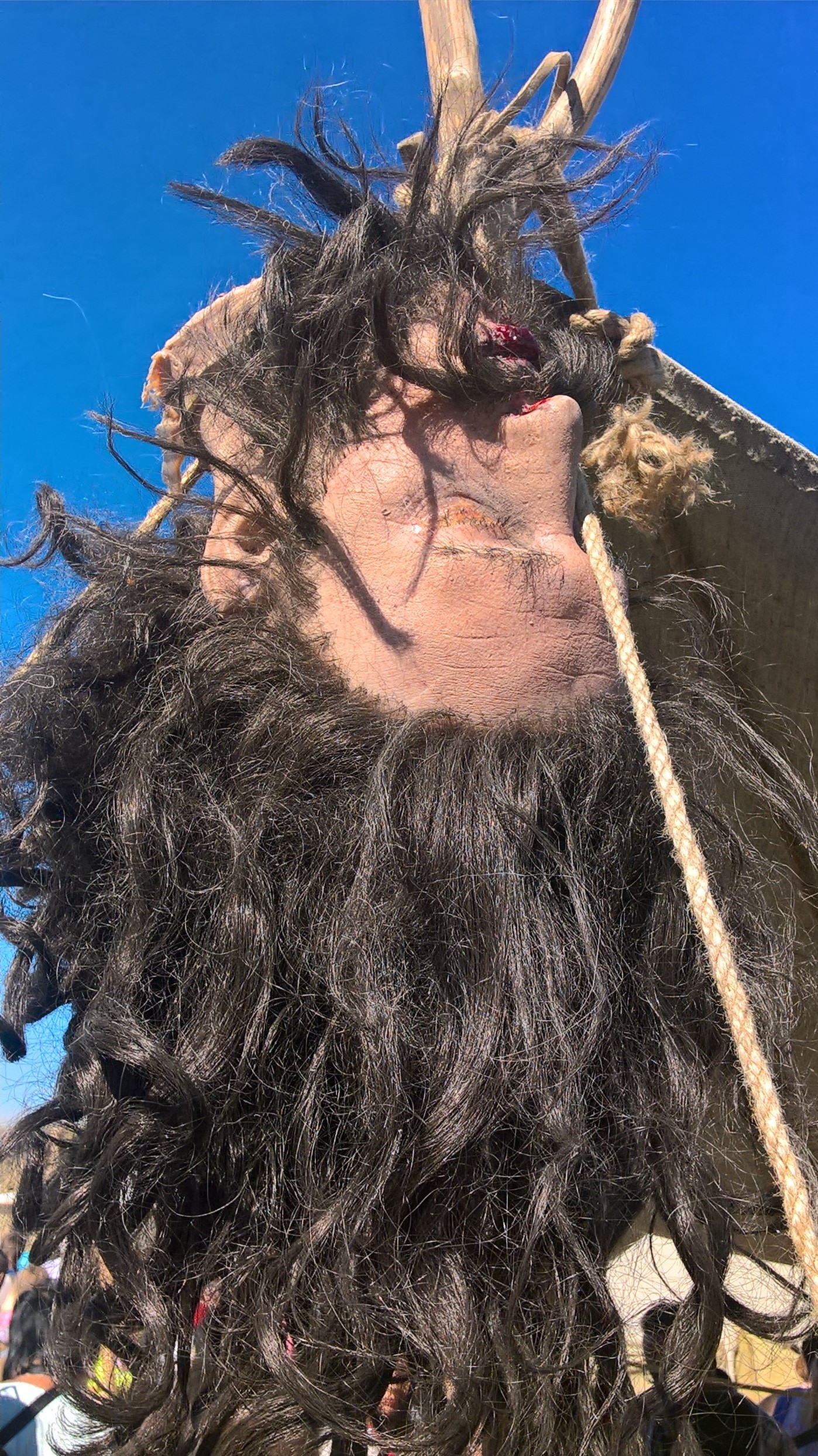 При входе на историческую площадку посетителей встречали песнями, на входе сидел средневековый нищий, просящий вполне современные монеты, а чуть дальше висел муляж отрубленной головы в назидание нечестным торговцам.