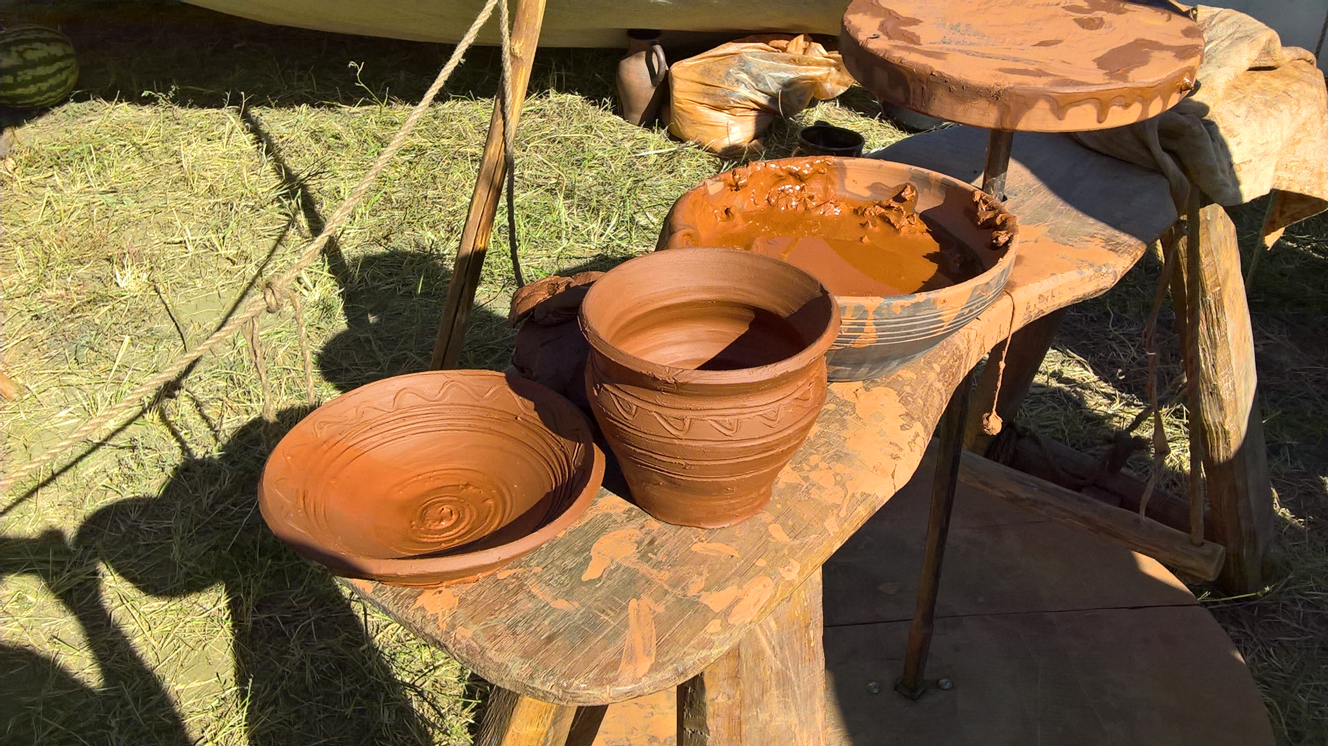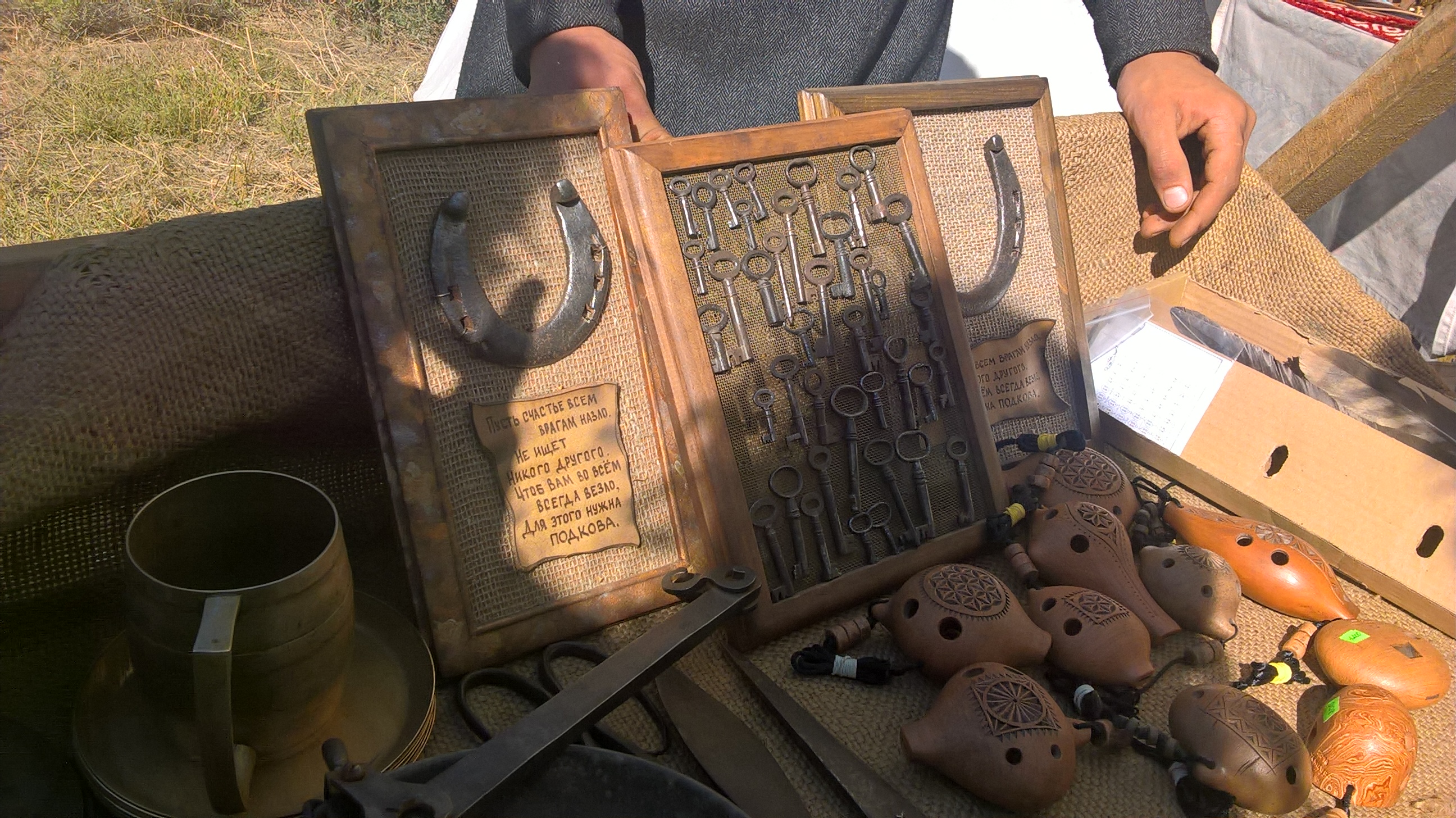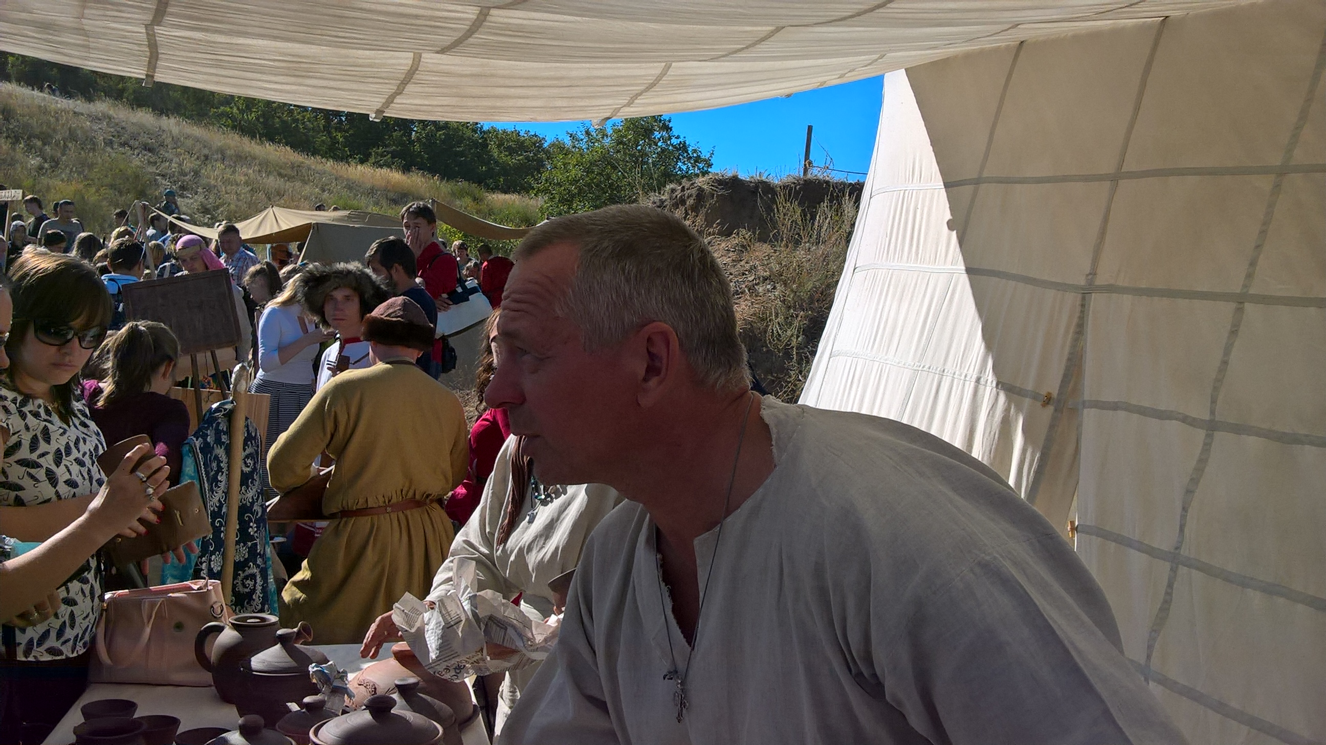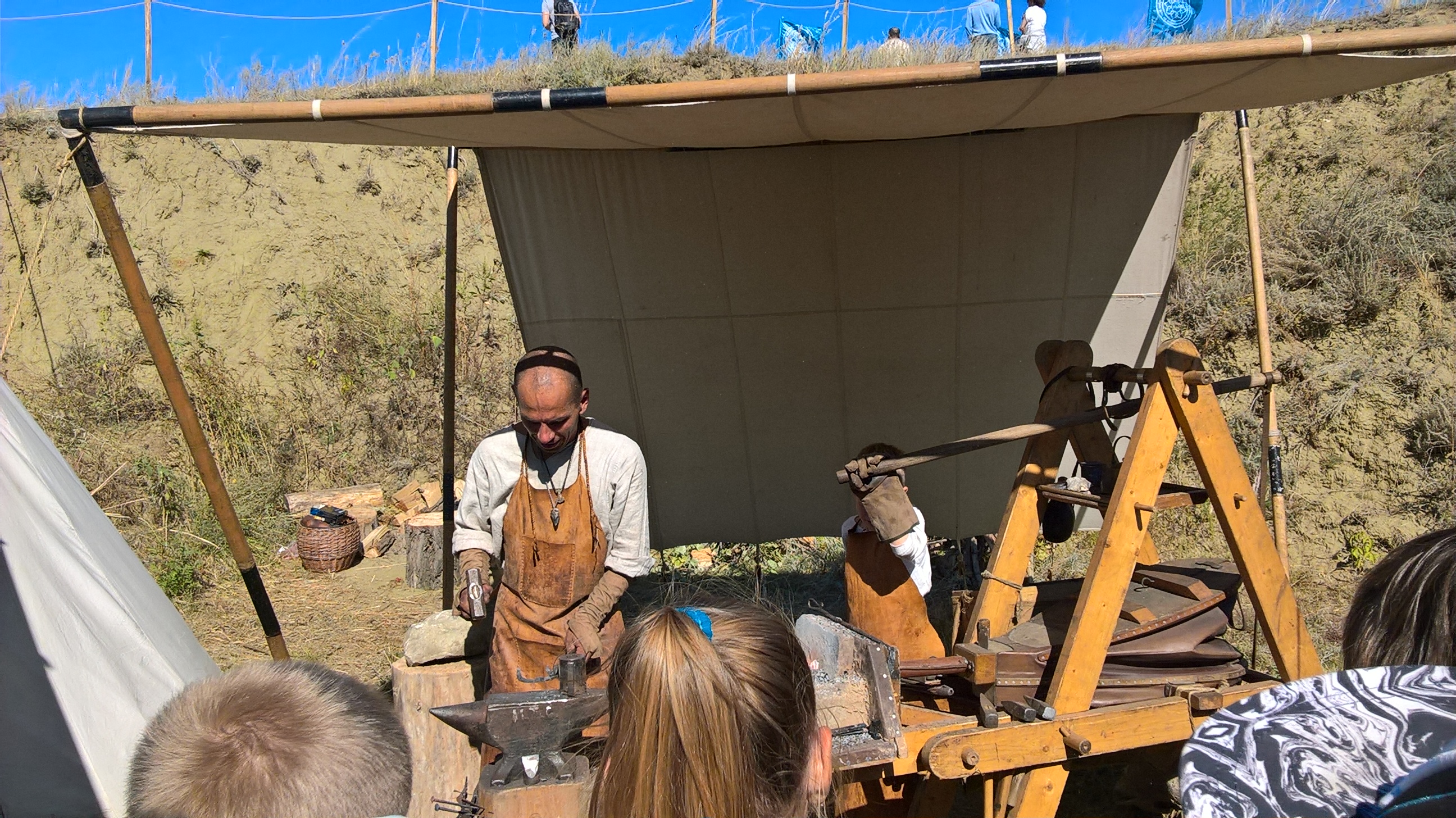 На площадках реконструкторы и ремесленники из семи стран (Россия, Израиль, Китай, Франция, Казахстан, Беларусь и Азербайджан) предлагали свои работы, демонстрировали искусство боя, лозоплетения, резьбы по камню, кожевенному делу и др.