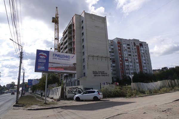размещен непосредственно перед домом, на котором дольщики написали фразу «Здесь голодают обманутые дольщики. В.В. Путин - помогите!». На следующем по улице Политехнической билборде повесили плакат, информирующий горожан о предстоящих 18 сентября выборах в нижнюю палату парламента.