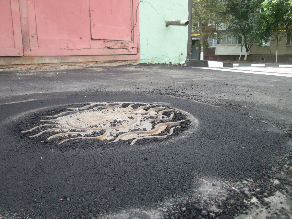 Журналисты же отметили качественный ремонт покрытия вокруг люков. «Мы поднимали люки на 1,5 метра», - рассказал Дмитрий Дулепин. – «Эти работы не были заявлены в сметах, но учитывая состояние люков мы сделали эту работу. В итоге их удалось сравнять с горизонтом».