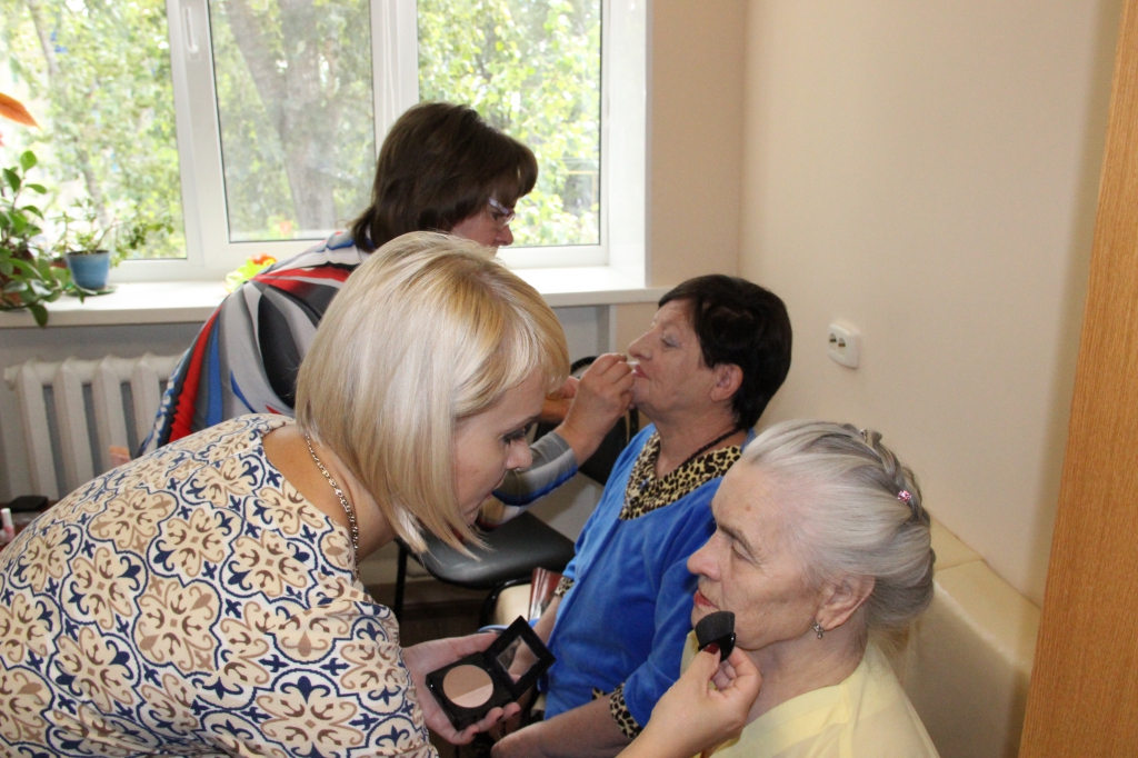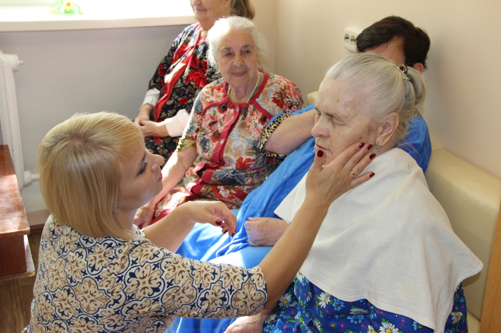 Сотрудники дома-интерната показали проживающим женщинам пожилого возраста мастер-класс по уходу за кожей. Были представлены и воплощены различные прически для повседневной жизни. Женщины-жители дома-интерната не только перенимали опыт у сотрудников, но и сами охотно делились советами. Мастер класс прошел в атмосфере энтузиазма и творчества.