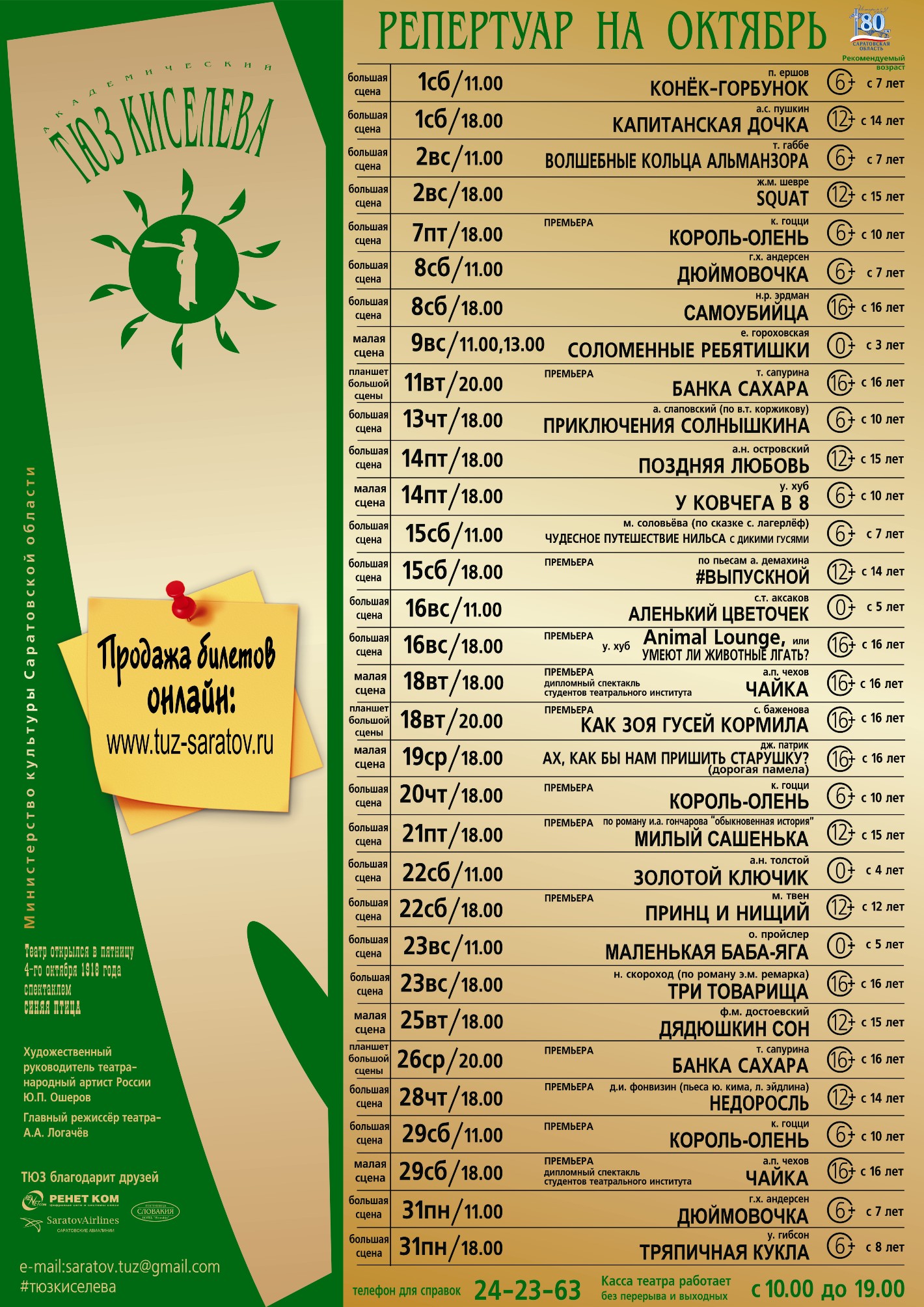 Саратовский академический театр юного зрителя им. Ю.П. Киселева в преддверии дня учителя 30 сентября 2016 года представит премьеру на Большой сцене — спектакль «#Выпускной» по драматургии победителя конкурса «Учитель года России – 2012» Александра Демахина. Постановка и сценография – Сергей Аронин (Москва).