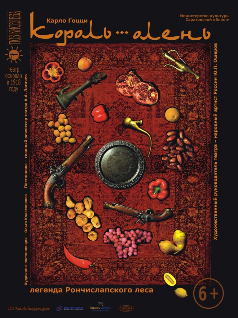 Саратовский академический театр юного зрителя им. Ю.П. Киселева представляет премьеру спектакля на Большой сцене для детей старше 10 лет по сказке Карло Гоцци «Король-Олень» (перевод Я. Блоха и Р. Блох). Постановку готовит главный режиссёр театра Алексей Логачёв, художник-постано