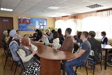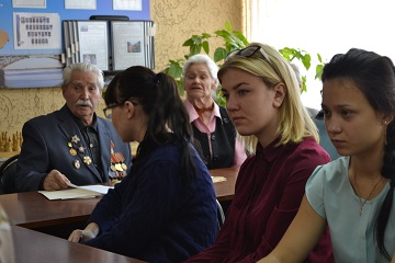 Гости и хозяева собрались в читальном зале учреждения за одним большим столом. Непринужденный разговор завязался почти сразу. Ветеран Великой Отечественной войны Михаил Михайлович Певцов поделился с молодыми людьми секретами победы: «Нужно быть мужественными и смелыми, как мы были в войну. Тогда в ситуации «жизнь или смерть» вы поступите решительно и правильно». Михаил Михайлович рассказал, как спасался из горящего танка, как резал ножом собственную плоть, чтобы достать огромный осколок фашистской гранаты, глубоко засевший в его ноге. Молодые люди слушали его рассказ, плотно сжав губы, стараясь казаться твердыми и мужественными, в то время как в их глазах блестели слезы.