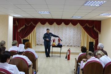 Инструктаж для сотрудников учреждения провел заместитель начальника ОНДиПР по Энгельсскому и Ровенскому районам подполковник внутренней службы Юрий Александрович Боткин. Он напомнил собравшимся о пожаре, произошедшем 15 октября в доме престарелых Краснодарского края, и предостерег от подобных происшествий. Был подробно проработан механизм действий сотрудников при возможном возгорании и правила использования первичных средств пожаротушения. В каждом из подразделений учреждения, в том числе в третьем корпусе дома-интерната, расположенном в селе Квасниковка, прошли практические учения с применением носилок и самоспасателей, которые имеются в учреждении в достаточном количестве.
