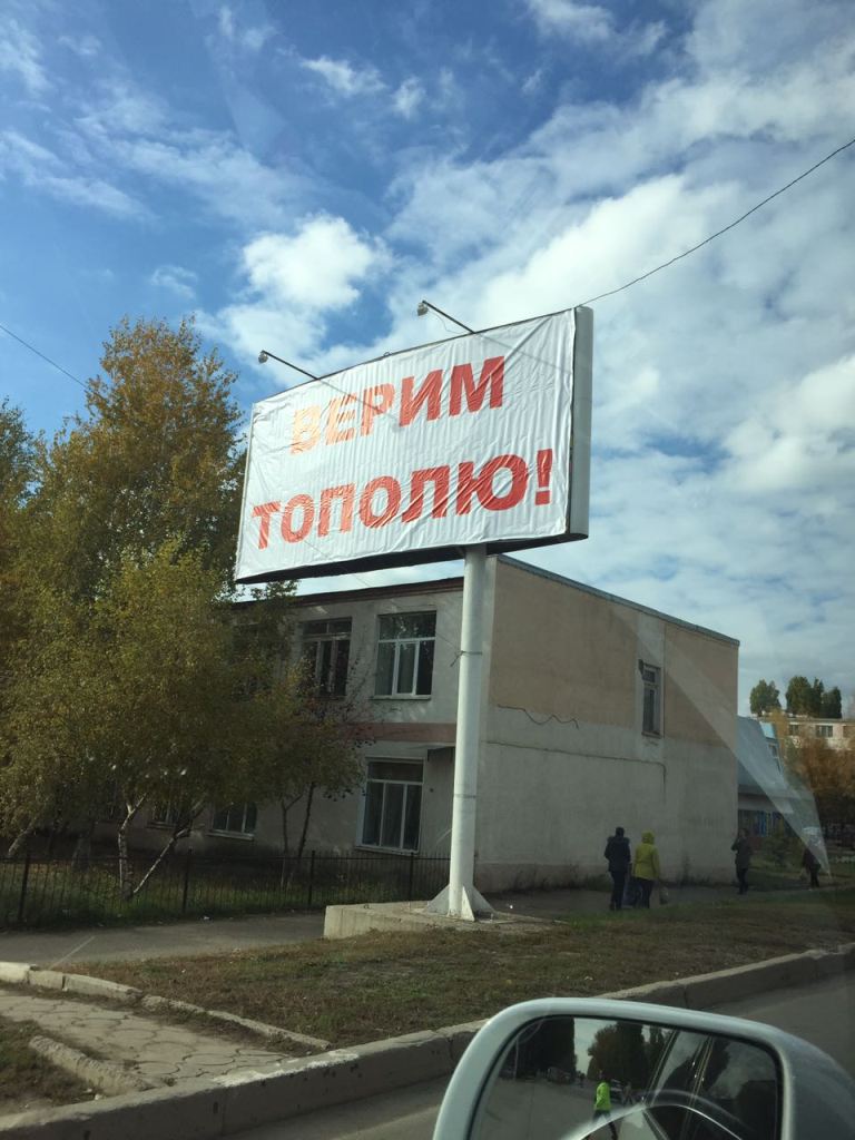 Однако Тополь в место реальной работы хвалит себя через «баннеры» которые появились на утро и говорит что «правда за Тополем» как будто в 90-х жить стали." - говорится в сообщении жителей.