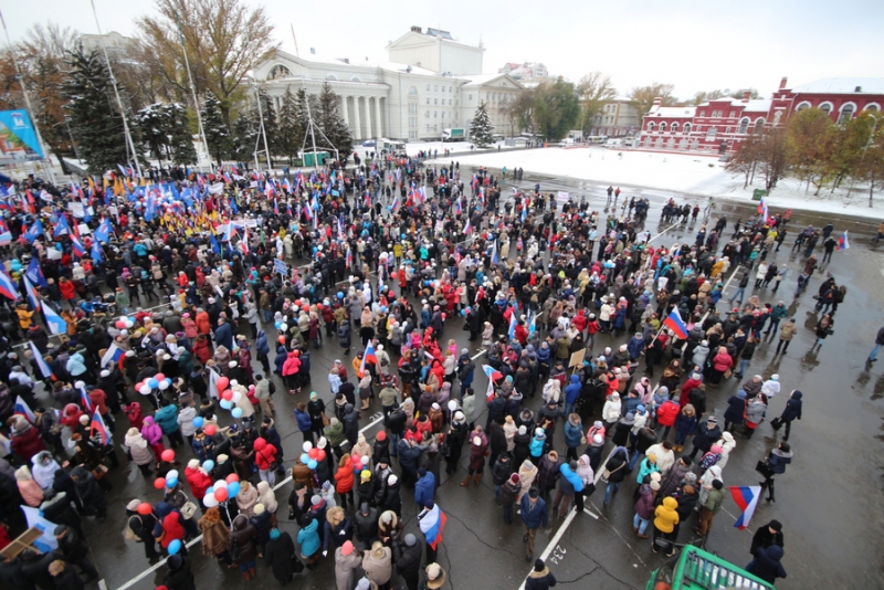 Сегодня на Театральной площади Саратова проходит митинг-концерт в честь Дня народного единства. Мероприятие посетили представители различных политических сил, общественных организаций и районов области.