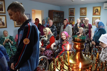 9 ноября в связи с многочисленными просьбами прихожан частица мощей Святого великомученика и Целителя Пантелеимона доставлена в Энгельсский дом-интернат для престарелых и инвалидов. С этого дня святыня будет постоянно пребывать в Домовом храме учреждения, даруя святую помощь и утешение всем, с верою к ней притекающим. Проживающие дома-интерната и горожане смогут обращатсья к святому с просьбами о даровании здравия родным, об исцелении души и тела, чтобы святой походатайствовал пред Господом.