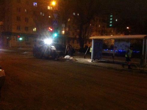В связи с плотным потоком транспорта днем, снегоуборочная техника проводит работу по расчистке улиц от снега в ночное время.