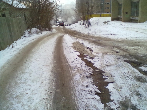 По этой улице не то,что проезжать на авто проблемно,так пешком ходить трудно. Одна надежда,что с постройкой церкви на ул,Авиационной её хоть как-то облагородят. Хотя,на встречу с жителями нашего посёлка руководитель администрации Ленинского р-на не заехал в сам посёлок из-за плохих дорог,встреча происходила около пр.Строителей.