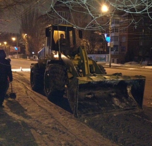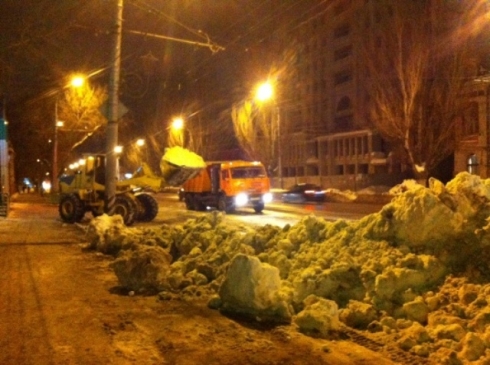 На магистралях и улицах Октябрьского района с интенсивным движением транспорта и в связи с прошедшим снегопадом уборочные работы проводятся и в ночное время.