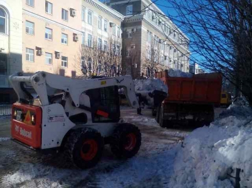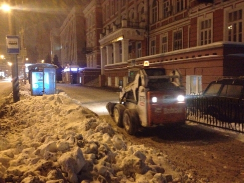 Расчистка территории Октябрьского района от снега проходит в круглосуточном режиме, начиная с выходных уже вывезено порядка 1000 куб. снега.