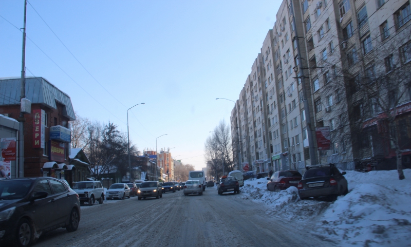 Улицу Чапаева почему-то очистили от снега фрагментарно: от Ильинской до Соколовой — все хорошо, а дальше на горе, в сторону 1-го Магнитного проезда, она покрыта слоем снега с накатанными в нем колеями. Примерно также выглядит и сам 1-й Магнитный, где снег не удосужились убрать еще с прошлого сильного снегопада. Между тем, эта дорога пользуется заслуженной популярностью у водителей, ведь она позволяет выйти на улицу Танкистов, минуя пробки в центре.
