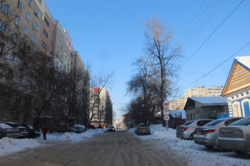 Еще одна улица, выходящая на Танкистов, по которой объезжают затор, — Безымянная. На ней до сих пор не устранена наледь после коммунальной аварии, произошедшей на прошлой неделе, но выпавший снег с дороги к четвергу убрали. Другой дороге, выходящей на Танкистов, повезло меньше, по 1-й Садовой снег не почистили, на ней авто накатали колею.