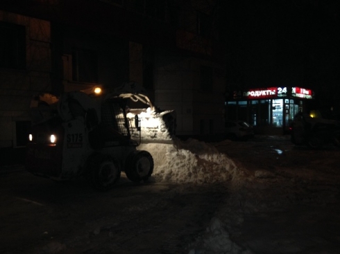 Расчистка территории Октябрьского района от снега проходит в круглосуточном режиме, в минувшие сутки уже вывезено порядка 1000 куб. снега.