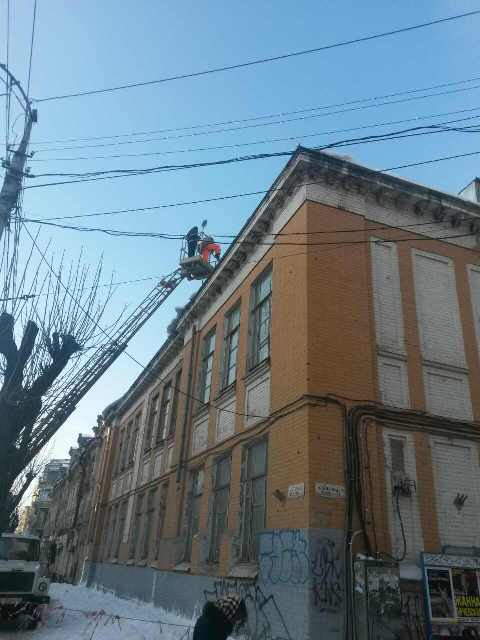 Кроме того, в связи с повышением температуры воздуха, продолжаются работы по устранению наледи и сосулек с крыш домов. Сегодня, 22 февраля, были очищены скатные кровли и крыши многоквартирных домов по адресу ул. Мирный переулок, д. № 6, ул. Горького. д. 21.