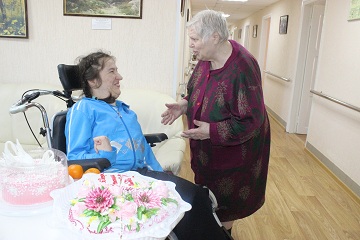 Этот концерт стал одним из многочисленных сюрпризов этого дня для проживающей дома-интерната Зои Харченко. Сегодня она впервые отмечает свой День рождения в стенах дома-интерната. Следует сказать, что около года назад Зоя сама приняла решение поселиться в Энгельсском доме-интернате и обратилась для этого за помощью к Ольге Юрьевне Баталиной, которая и помогла ей в получении путевки.