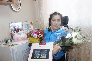 Своим невероятным оптимизмом, неподражаемой улыбкой и умением дарить позитив окружающим Зоя за короткое время смогла завоевать всеобщую любовь сотрудников и проживающих. Но самым дорогим и близким человеком для Зои на протяжении всей ее жизни была и остаётся ее мама. На этот раз Татьяна Ивановна поздравила дочь довольно необычным способом – она прочитала собственные стихи по внутреннему радио. Все проживающие были тронуты невероятным талантом, искренностью лирических произведений. Следует сказать, что Зоя также унаследовала творческий дар от матери, она пишет эссе и рассказы. Весь день Зоя купалась в комплиментах и поздравлениях, утопала в цветах и открытках. А вечером ее ждал самый главный подарок: от администрации Энгельсского дома-интерната и директора Сергея Владимировича Сафошкина ей вручили современный планшет. Теперь сотрудники и проживающие с нетерпением ждут новых произведений Зои, тексты которых начинающая писательница наберет с помощью нового планшета.