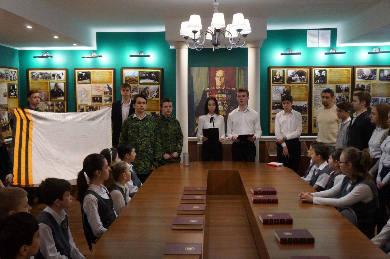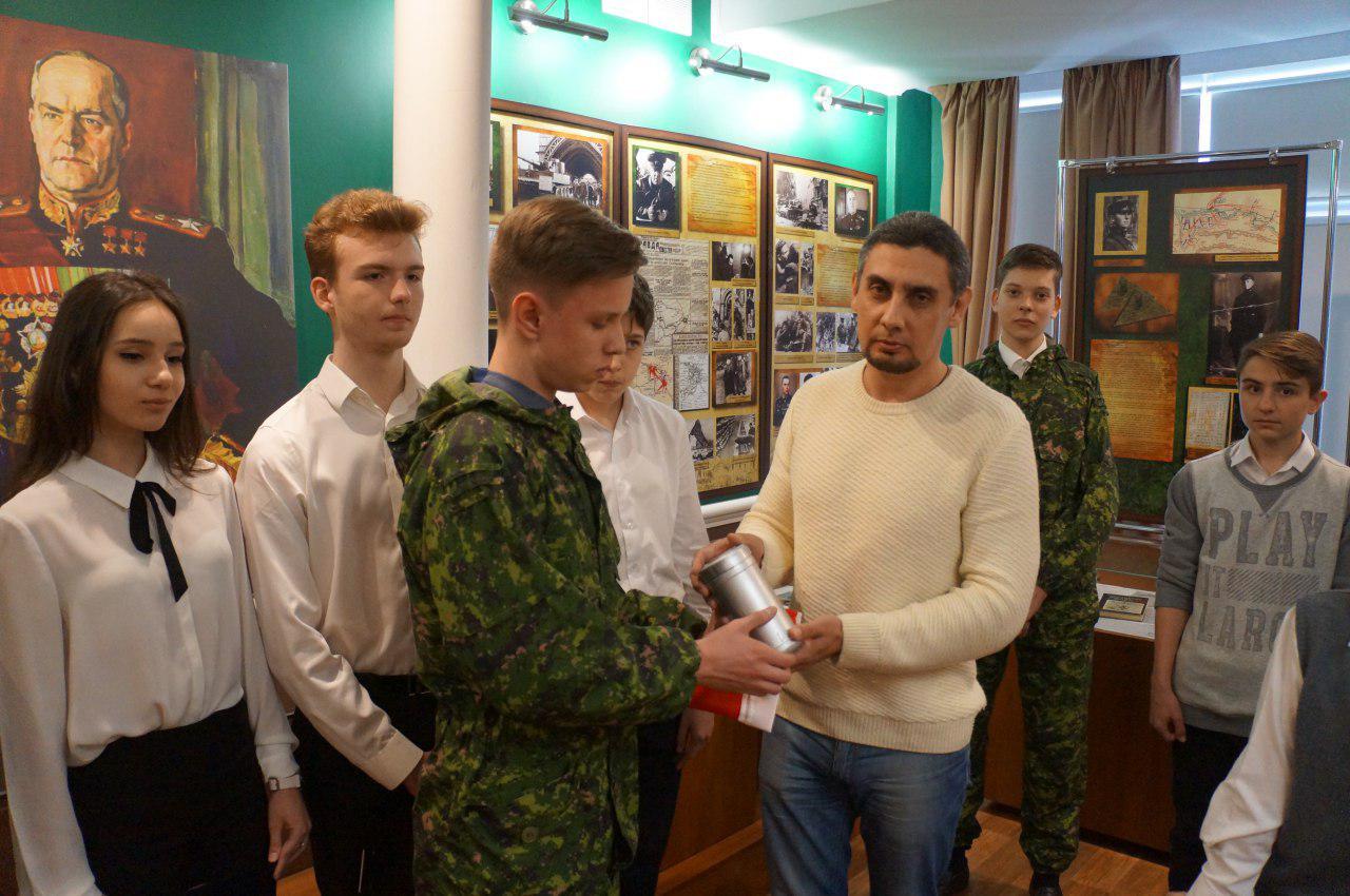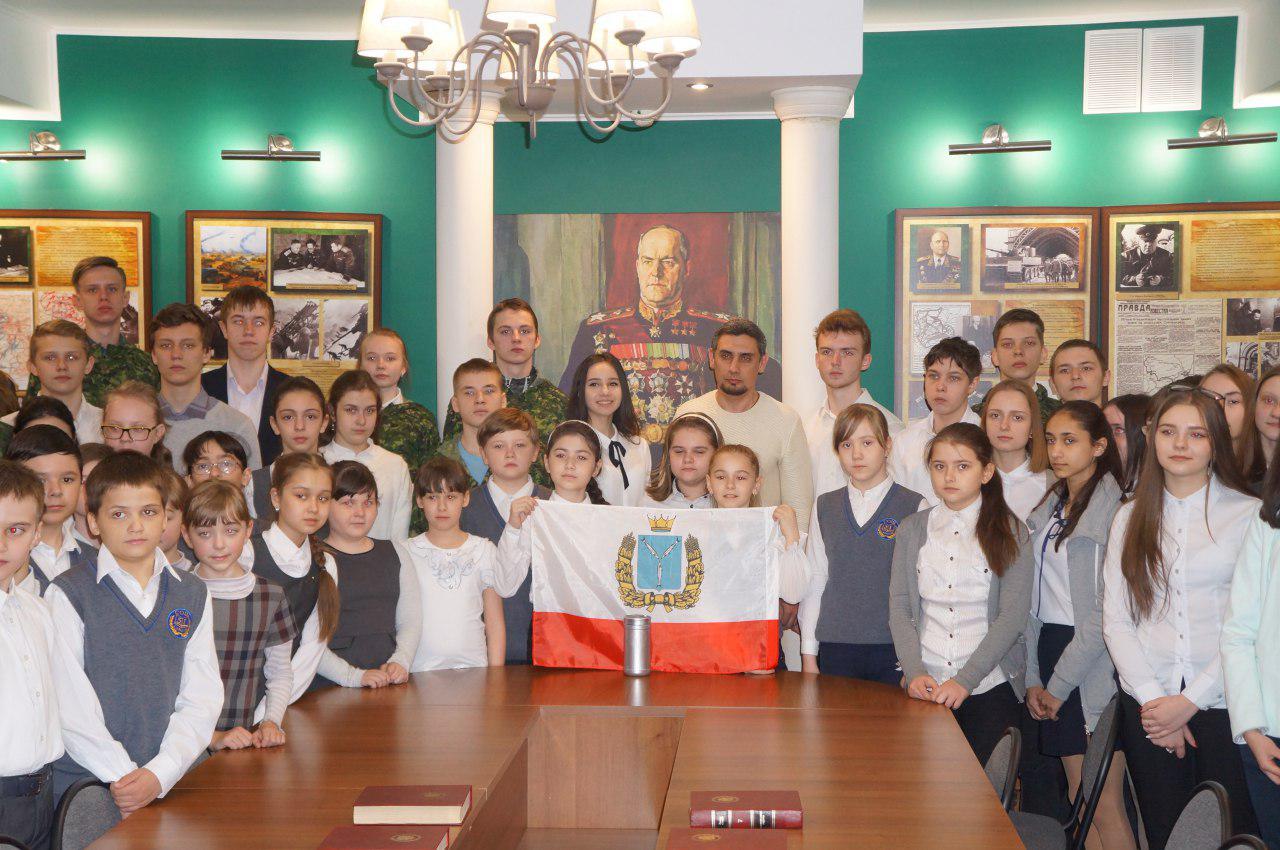 В завершение встречи учащиеся торжественно вручили знамя Денису Мастридееву. После возвращения в Саратов альпинист передаст его на хранение в школьный музей.