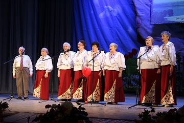 Вокальный коллектив дома-интерната «Надежда» талантливо и проникновенно исполнил песню «Гляжу в озера синие». Пожилым исполнителям удалось передать всю теплоту этой лиричной песни, рассказывающей о безграничной невероятно трогательную любови к Родине.