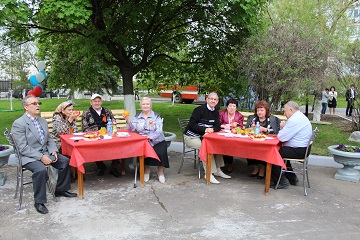 Традиционно в этот день прошло чествование героев-победителей, проживающих в учреждении. Главных виновников торжества собрали за праздничным столом в по-домашнему уютном читальном зале учреждения. Снова звучали теплые слова поздравлений, которые были подкреплены сладкими подарками от спонсоров – кондитерских фабрик города и коммерческого банка «БИНБАНК». Ветеранов, которые по состоянию здоровья не могли присутствовать на общем празднике, тоже не забыли. С поздравлениями и угощениями пришли прямо в их комнаты. Для всех в этот светлый праздник хватило внимания, слов благодарности и душевной теплоты.