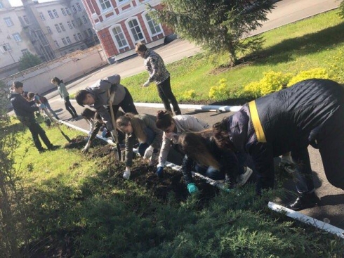 В мае каждого года учащиеся МАОУ «Гимназия № 1» химико-биологических групп 10 и 11 классов участвуют в благоустройстве школьного двора. Под руководством заместителя директора по хозяйственной части и учителя биологии ребята высадили более 500 саженцев цветочных культур.