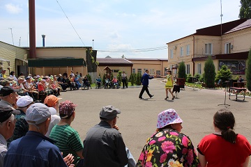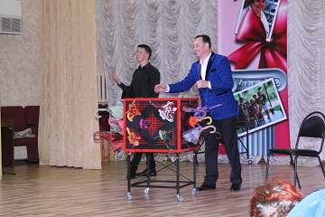 У проживающих была возможность и самим принять активное участие в представлении, попробовав себя в роли артистов – в сопровождении ведущих проживающие показывали фокусы, танцевали, выполняли несложные трюки. Особенно сногсшибательные ощущения получили те, кто смог стать непосредственным участником номера «Распиливание девушки», убедиться в том, что на сцене происходит что-то невероятное, невозможное, неподдающиеся логическому объяснению.