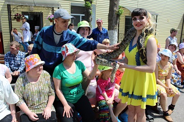 Кульминационным моментом программы стало выступление питона, который ловко извивался. Массу положительных эмоций и восторга вызвало то, что каждый желающий мог погладить пресмыкающегося гостя.