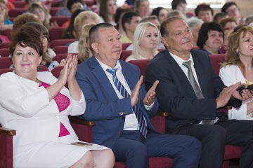 Поднявшийся затем на сцену советник министра социального развития Саратовской области Виктор Сергеевич Суряпин передал социальным работникам и медикам теплые слова поздравления от лица министра Ларисы Викторовны Колязиной, отметив высокий профессионализм всех собравшихся в зале.